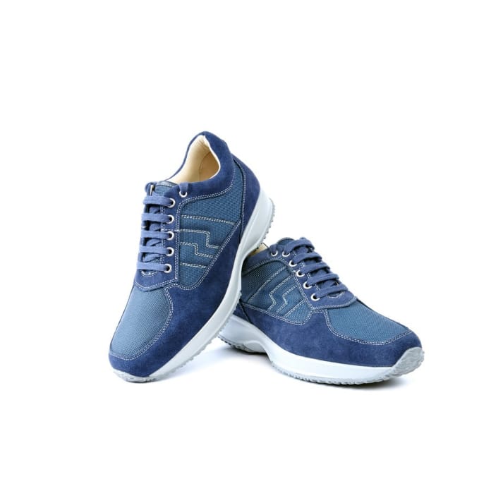 Navy Blue Suede Casual Sneakers with Lace-Up Design Description: Stay comfortable and stylish in these navy blue suede sneakers, designed for everyday wear with a breathable mesh upper and soft suede overlays. The lace-up closure ensures a customizable fit, complemented by a lightweight EVA sole for shock absorption and all-day ease. Perfect for urban adventures or casual strolls, these sneakers combine durability with a sleek, modern look. Available in men’s sizes 8-12.